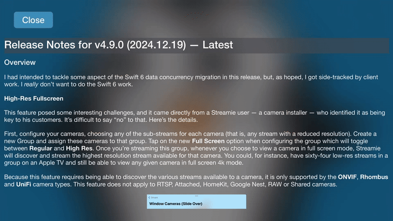 After the loading screen, the app currently displays release notes in a full-screen format. While it’s great that there’s a persistent close button, ensuring users can easily exit this view, the full-screen layout can still feel intrusive and might not provide the best experience for consuming this information.